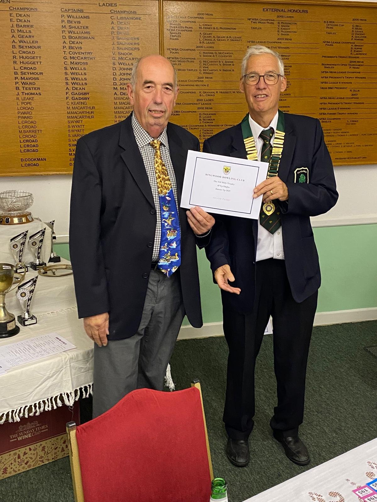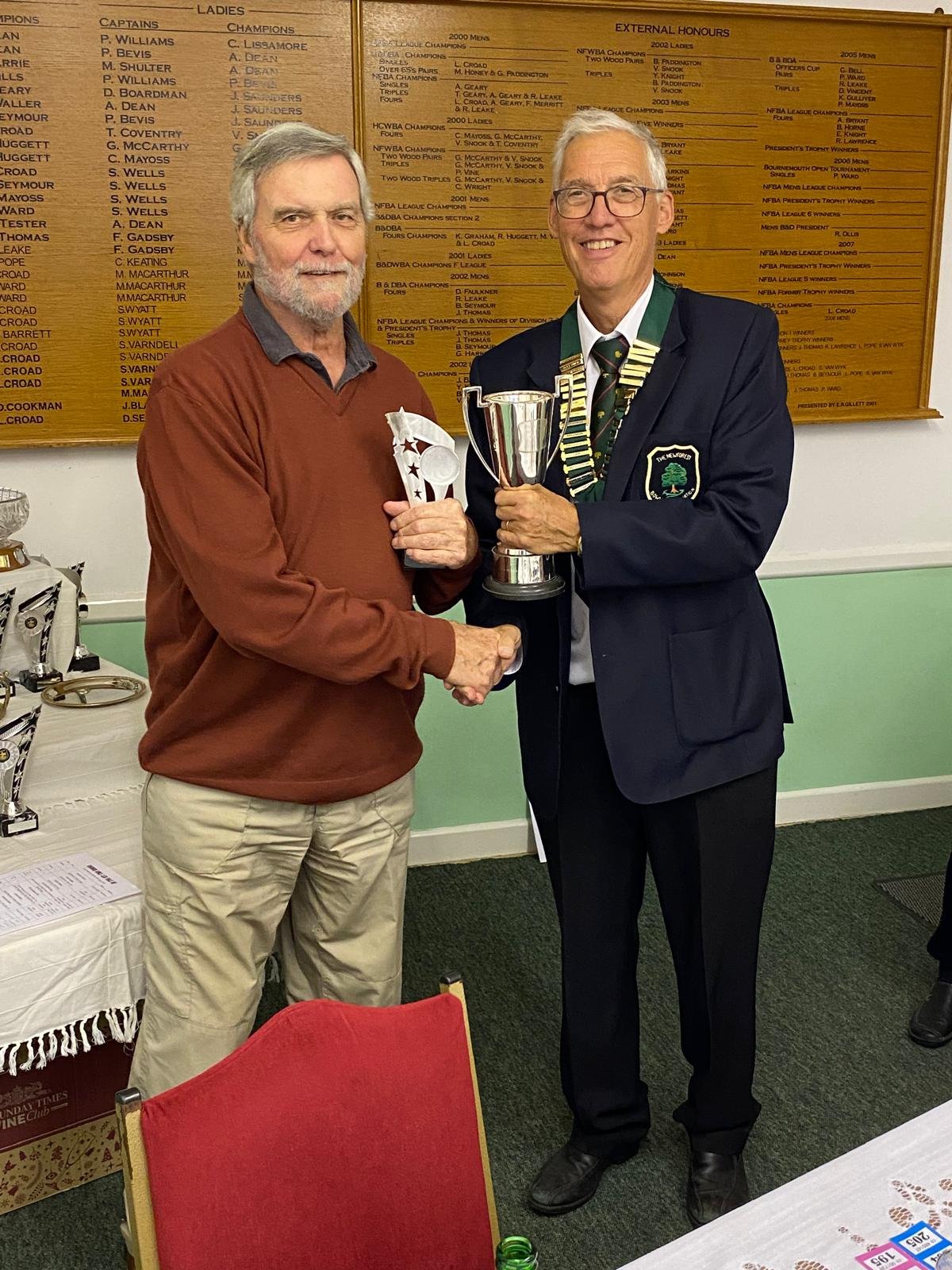 Barry was last seen at the Bowling Club at the prize presentation evening where he received the 45-Up Trophy.