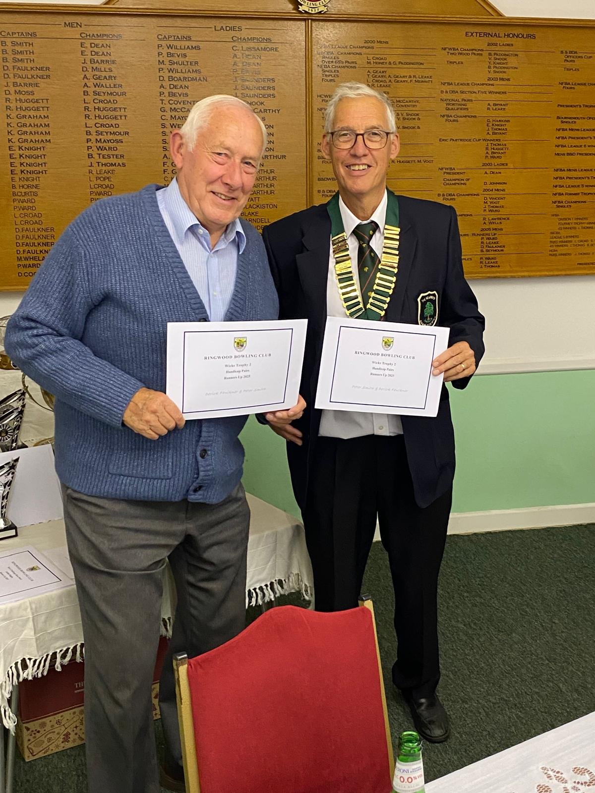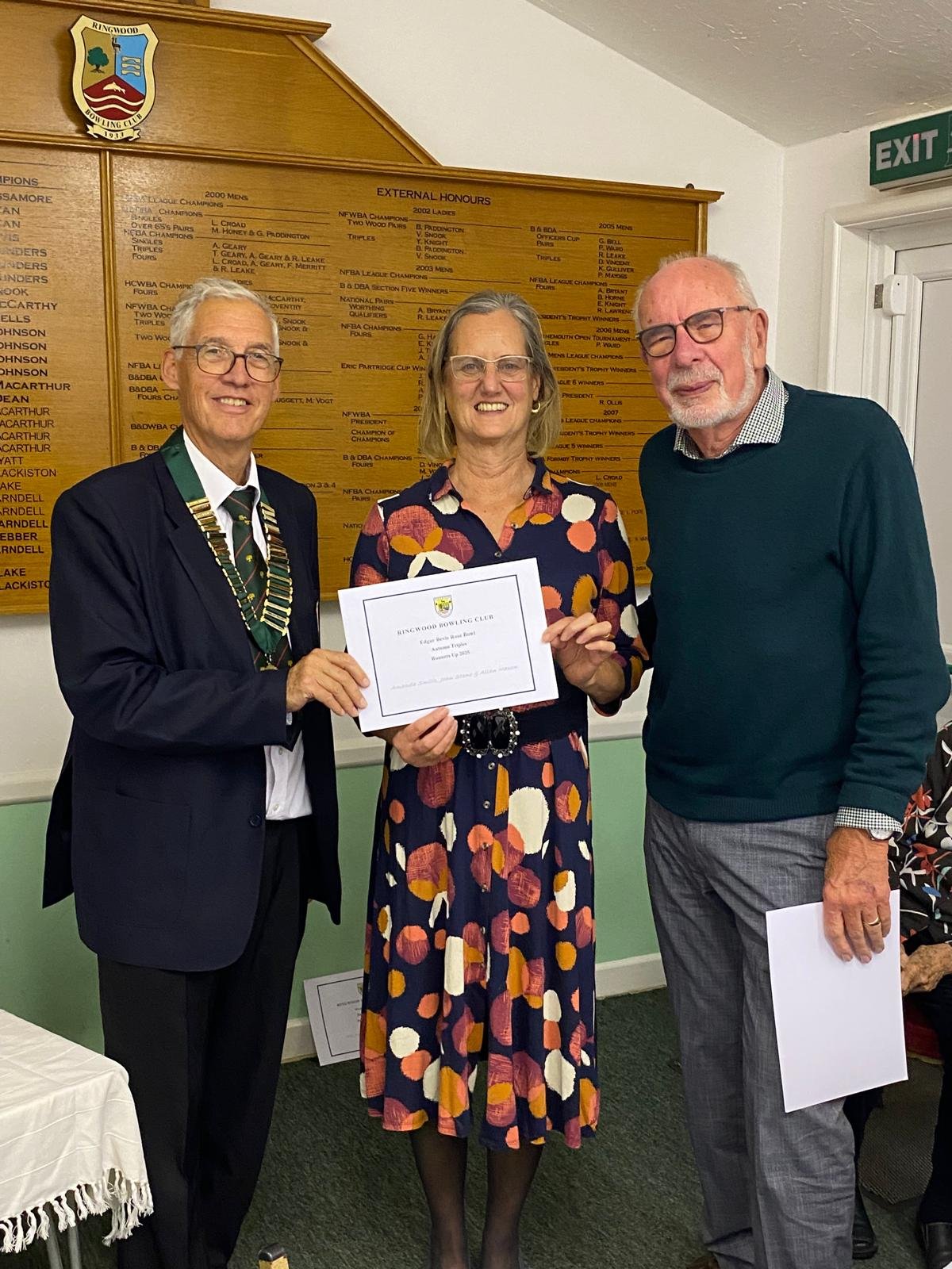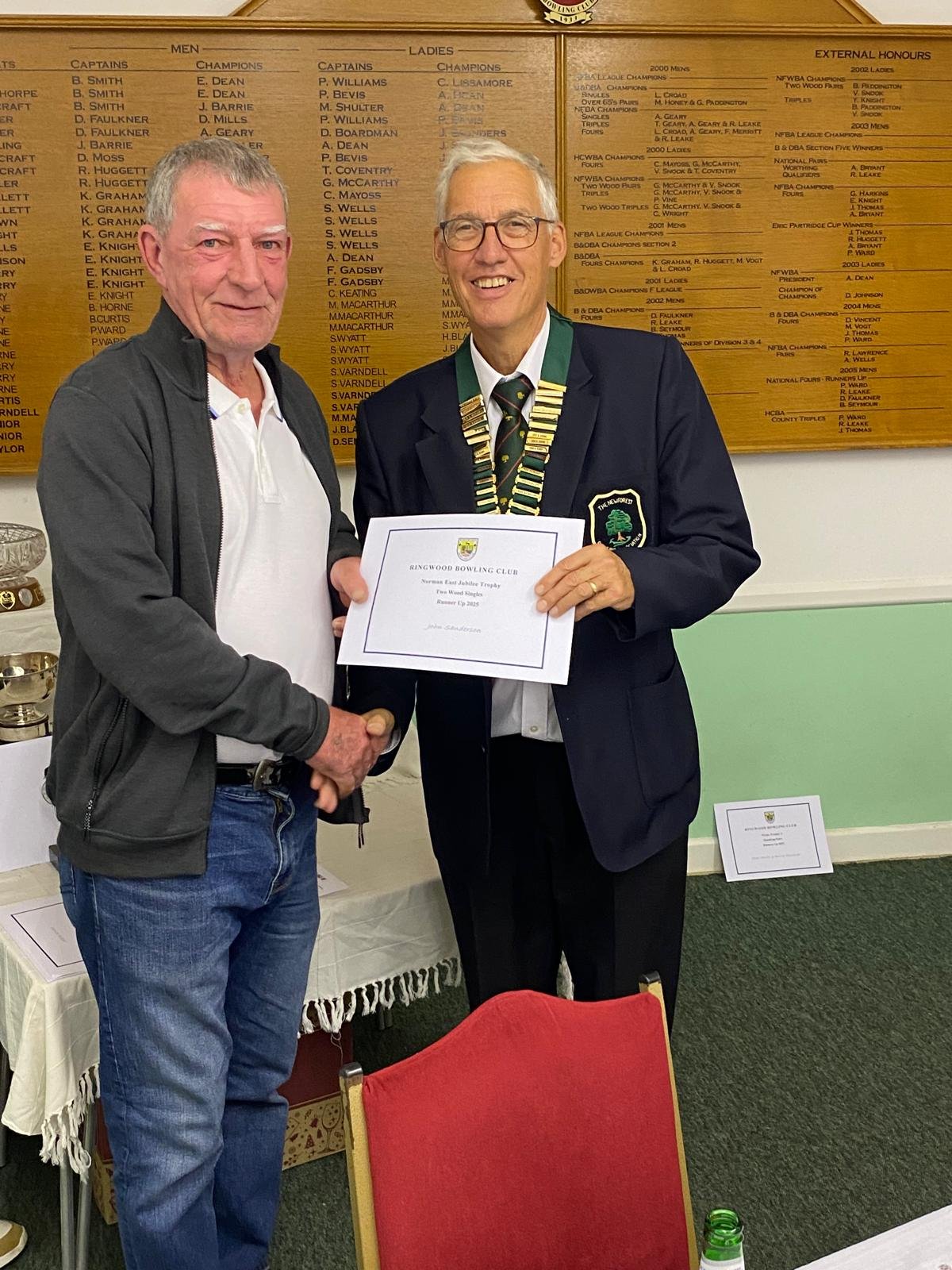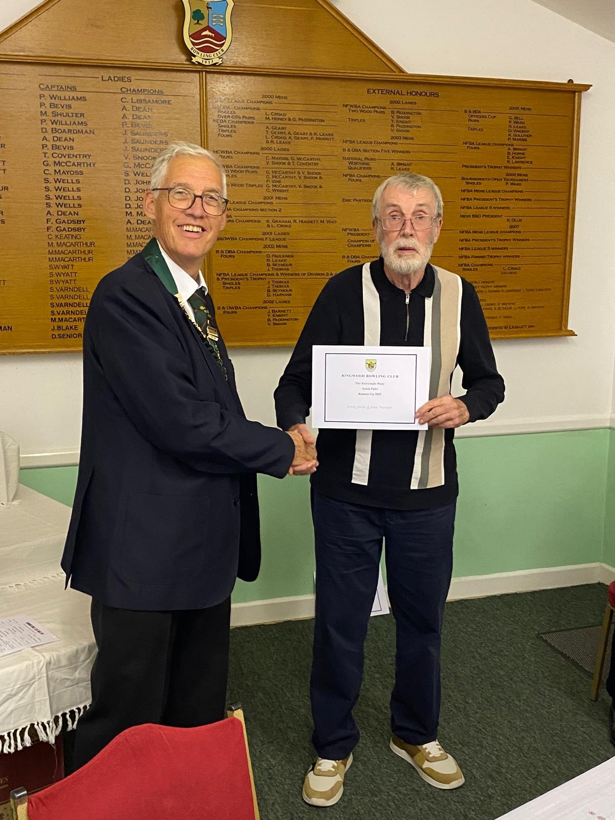 The trophies were presented by President Peter Smith dressed with a very smart blazer and wearing his chain of office.
